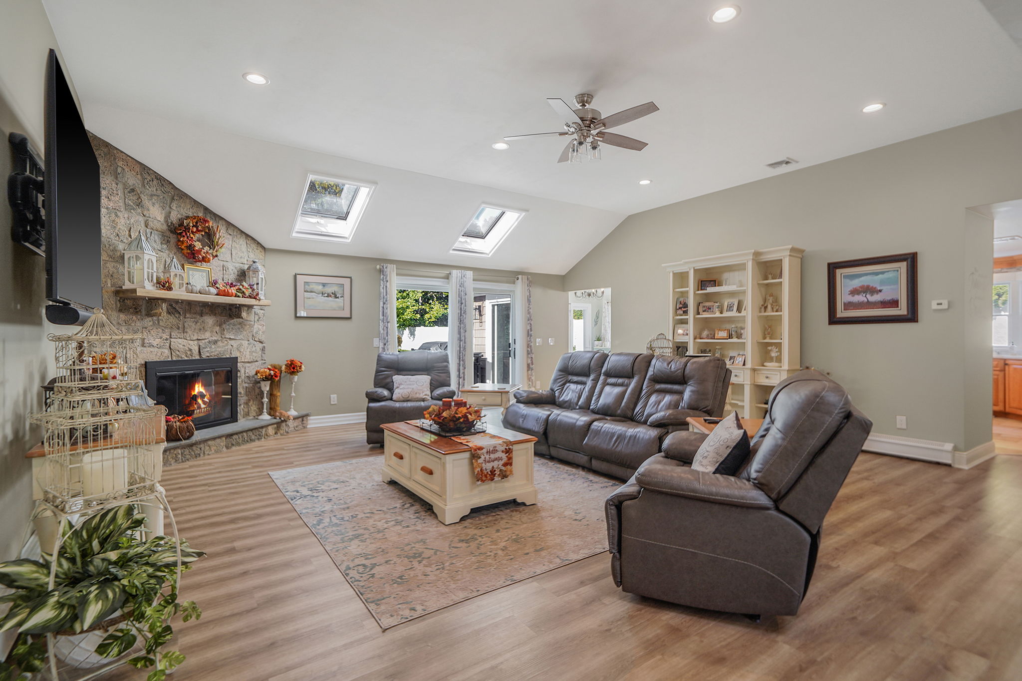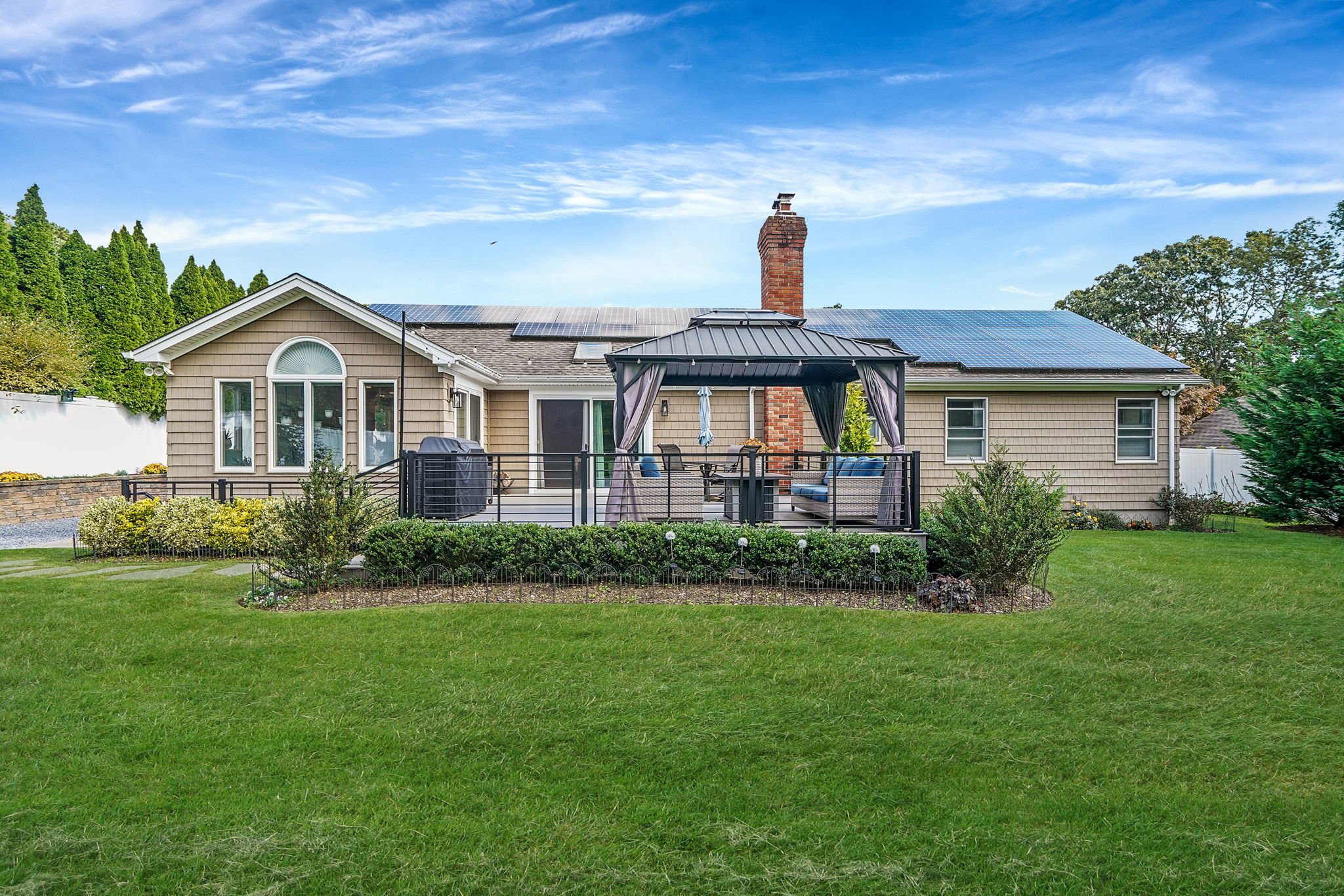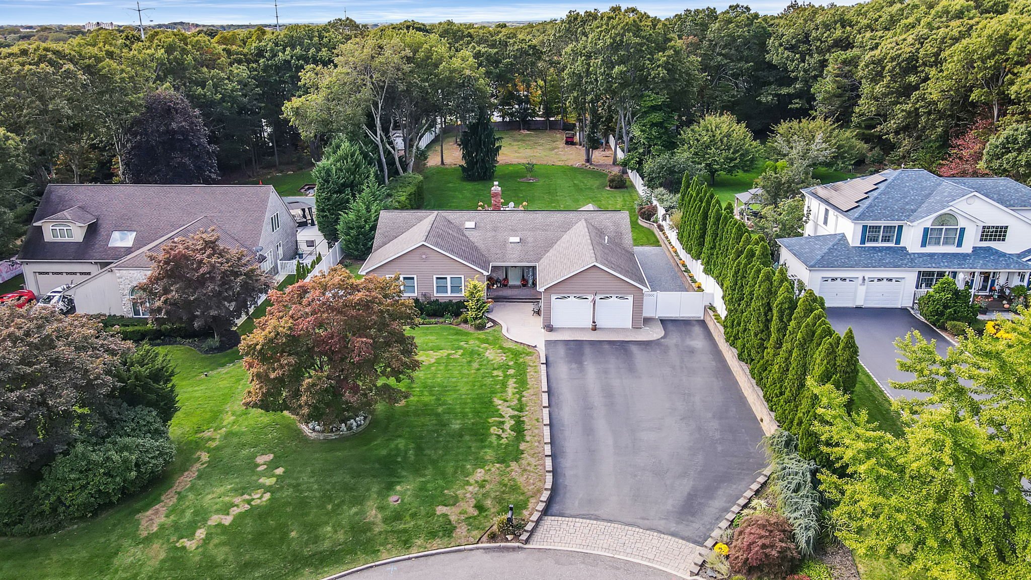 Perfectly positioned on a quiet, tree-lined street, 246 Roosevelt Blvd showcases a beautifully updated home that blends modern comfort, thoughtful design, and suburban tranquility. Set on nearly an acre of level property, this residence delivers exceptional space both inside and out — ideal for entertaining, working from home, or multigenerational living. Step inside to an inviting open-concept floor plan filled with natural light and warmth. The chef’s kitchen impresses with Sub-Zero refrigeration, Bosch double ovens, a five-burner cooktop, and radiant-heated floors that extend throughout much of the main level. The home features three spacious bedrooms and two full baths, including a serene primary suite designed for relaxation. Comfort and efficiency define the home, featuring a five-zone propane radiant heating system, two-zone central air, a 15-zone in-ground sprinkler system, and a whole-house water-filtration system. A partially finished walk-out basement with a separate entrance provides flexible options for a mother-daughter or in-law suite, home gym, or recreation space. Outdoors, the expansive driveway easily accommodates multiple vehicles — with plenty of room for a camper or boat — and leads to a two-car garage. A newer roof outfitted with solar panels enhances energy efficiency and reduces monthly utility costs, combining long-term savings with sustainability. Located in the highly regarded Hauppauge School District, this property offers the perfect blend of privacy, convenience, and modern living just minutes from shopping, dining, and major highways. A true turn-key opportunity in one of Suffolk County’s most desirable neighborhoods.